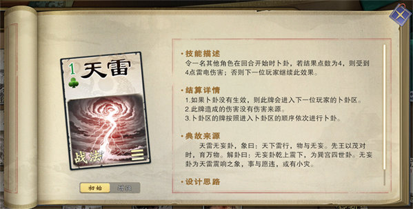 天雷在挂上后会进行判定,如果是4就会造成4点伤害,如果没触发就会传递给下一位。我们可以用识破来使天雷无效化,在无效后也会被传递给下一位玩家。因为天雷伤害较高,所以才建议大家手中保留识破,关键时刻可以保命。