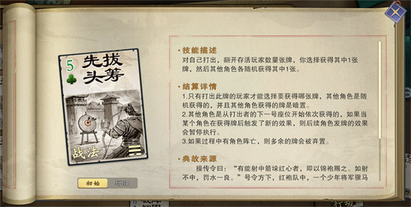 、胜负的影响都很大,比较简单,不用过多解释。在补牌时要注意自身生命值、手牌上限,在没牌时使用最好。