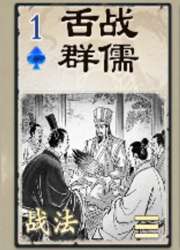 设计思路:言辞不断,连绵为泽,泽为水(♠),言辞不断喻为战法不断(打出战法后摸牌),锦囊妙计之首