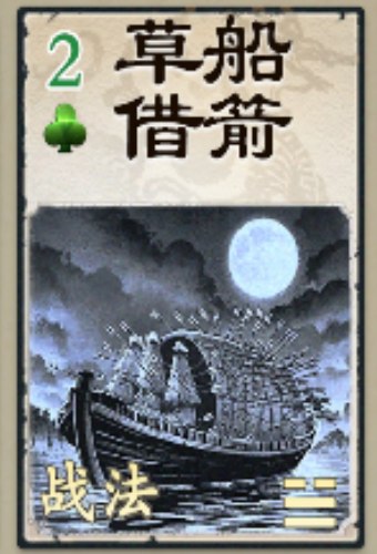 设计思路:以草人抵箭,取敌资为我所用(抵消伤害,并获得伤害牌),抵伤为生,生为木(♣),锦囊妙计之二