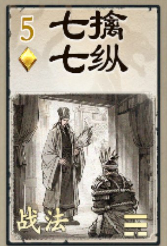 设计思路:以兵擒敌,以德服心,兵擒为金(♦),纵敌为策(免除伤害改为获得牌),锦囊妙计之五