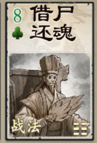 设计思路:阵亡后退敌,以护友方,友方生,生为木(♣),锦囊妙计之八