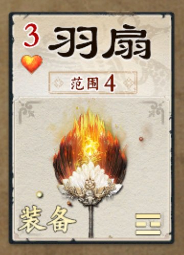 1.对目标造成并计算火属性伤害时,如果羽扇在你的装备区,则此火属性伤害+1