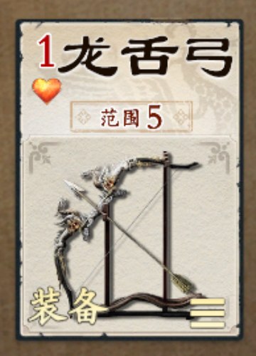 技能典故:以龙筋制成弓弦,故名。《三国演义》中吕布辕门射戟曾用此弓。
