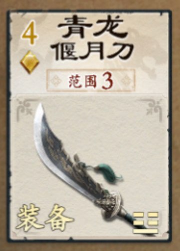 技能典故:《三国演义》载:云长造青龙偃月刀,又名“冷艳锯”,重八十二斤。《三国演义》中关羽所用。