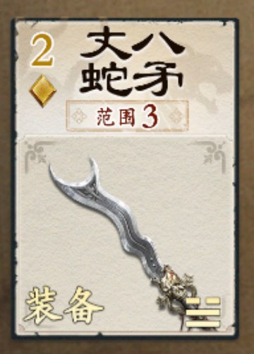 技能典故:长一丈八。通体铁制,由矛头、矛柄、矛鐏三部分组成。矛头长二尺余,扁平,弯曲如蛇形,两面有刃,故称蛇矛。《三国演义》中张飞所用。