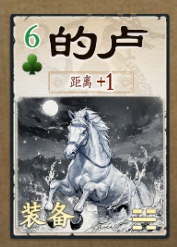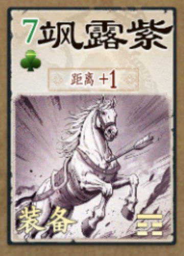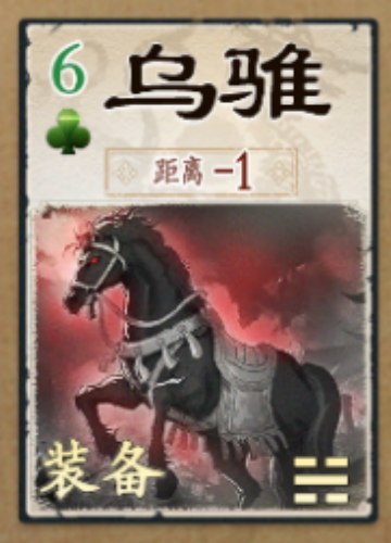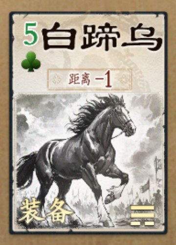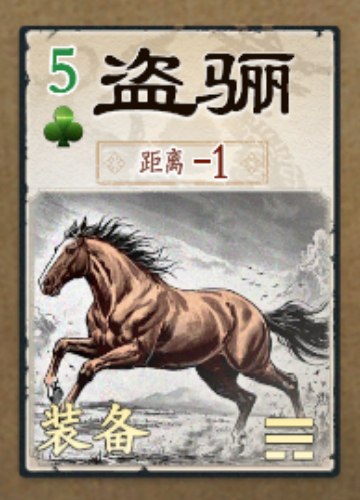 设计思路:天子之骏,驯服为生(装备时摸牌),生为木(♣),迅疾为风,风为巽,点数为5