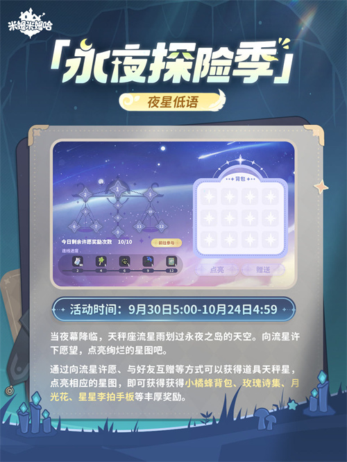 亲爱的梦想家们,「永夜探险季」已于9月30日开启~