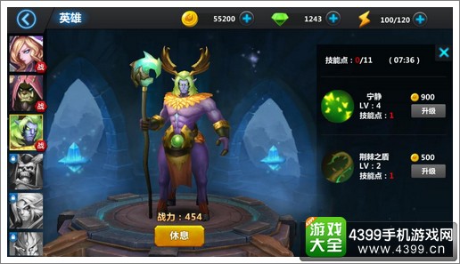 不同英雄有不同的英雄技能,这些技能都是在战斗中由英雄自身发动的,玩家不可操控,英雄技能升级需要技能点数,每一定时间回复1点技能点数。所以技能点数要用好。