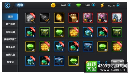 签到活动:累计签到10,15,20,25天可以获得钻石,一共250钻石。
