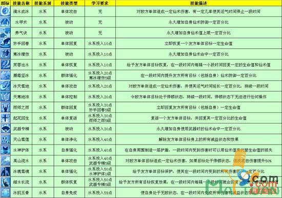 水系:辅助能力极强,仙术防御强,持久能力强,但仙术攻击低,生命值略低