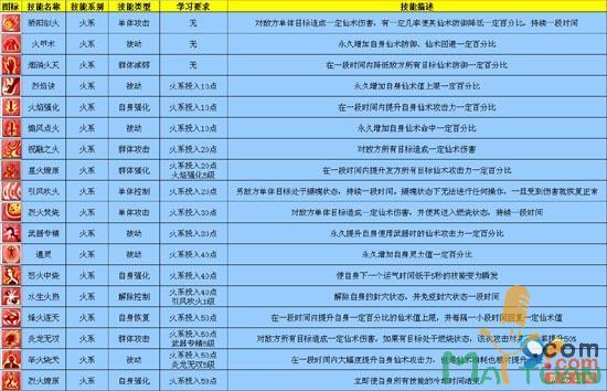 火系:仙术攻击高,爆发力强,仙术值高,生命值略低,施法速度慢