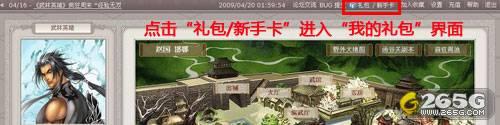 1、激活账号进入《武林英雄》,点击游戏界面顶部右侧的“礼包/新手卡”;