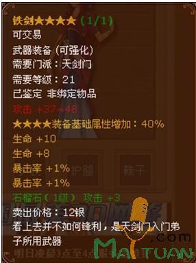 打孔后的装备,其名字后会有表示有一个洞,还没有镶嵌,每件装备最多可以打出3个孔。需要玩家注意的是打每一个孔的成功机率是不同的,打孔失败同样会消耗掉一个土灵石。要避免打孔失败,玩家们在打孔时加上保护“符”之后就万无一失了。