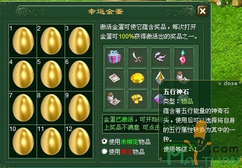 想要更改五行属性,可以在角色属性中的五行属性旁点击“转化”即可更改五行属性。每次更改五行属性需要消耗一个“五行神石”,而“五行神石”可以通过“幸运金蛋”砸蛋而获得。