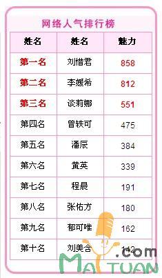 想让你喜欢的快女选手人气排名超过其他选手吗?想让你喜欢的选手进入前三吗?现在进入《快女》OnWeb在投票里插件的“献花”功能为2009快女选手网络人气投票,即可让你喜欢的选手领先于其他选手。