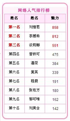 想让你喜欢的快女选手人气排名超过其他选手吗?想让你喜欢的选手进入前三吗?现在进入《快女》OnWeb在投票里插件的“献花”功能为2009快女选手网络人气投票,即可让你喜欢的选手领先于其他选手。