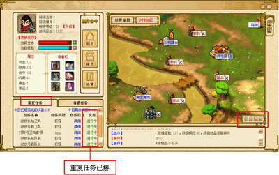 在游历界面的左下方会有【重复任务】,在做游历任务的时候同时点开左边下方的重复任务,而且与本地图相关的重复任务都可以一并点接受。