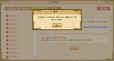 更happy的是,讨伐任务是每天都可以进行讨伐,每天都能从讨伐任务获得资源、铜币、声望等。真是不胜美哉啊!