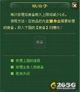 点击“修理装备”选项后,弹出新的对话窗口,其中有“修理全身装备”选项。