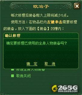再点击“修理全身装备”选项之后,并点击“确定”按钮后,即可对玩家身上所穿戴的全部装备进行一次性修理。