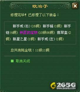 修理完成后,还会提示每件装备修理所花的费用以及全部装备所花费的总费用,让玩家一目了然,是不是很轻松很方便呢。