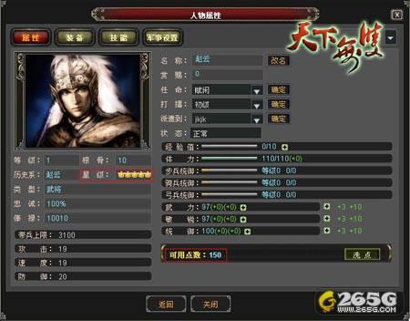 500多名三国历史著名的谋士与武将、俊郎与美人收录在《天下无双》的名将谱中,同时,“将领转生”系统即将上线!由我易网络制作运营的三国战争策略类网页游戏《天下无双》,打破了目前市面上三国类游戏名将属性的限定,名将转生系统之所以如此突出,并不仅仅在于它的等级层次和属性,而且还可进行五次转生,有机会让普通名将通过“易筋丸”转生为高级名将,打造专属于你自己的超级名将!