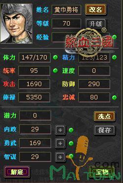 黄巾勇将均曾是叱咤沙场的猛士,单项初始属性勇武高达99,远超普通武将,再请看他的统率!70的将领,怎么可能拥有95的统率?