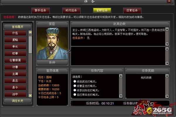 官职任务作为《决战天下》革命性玩法之一,它真是革了战争策略webgame任务单调的命。