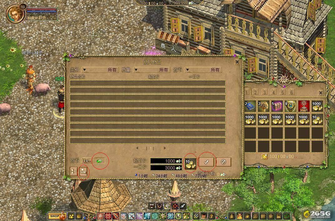 找到拍卖行职员,双击他打开拍卖窗口。首先选择“拍卖物品”选项,支付货币选择“绿宝石”,然后将已打包好的游戏币用鼠标拖入拍卖物品框内,调整价格后选择确定。此时,您的求购信息就已经进入拍卖行的商品列表中了。