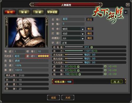 500多名三国历史著名的谋士与武将、俊郎与美人收录在《天下无双》的名将谱中,同时,“将领转生”的七月震撼上线!由我易网络制作运营的三国战争策略类网页游戏《天下无双》,打破了目前市面上三国类游戏名将属性的限定,名将转生系统之所以如此突出,并不仅仅在于它的等级层次和属性,而且还可进行五次转生,有机会让普通名将通过“易筋丸”转生为高级名将,打造专属于你自己的超级名将!