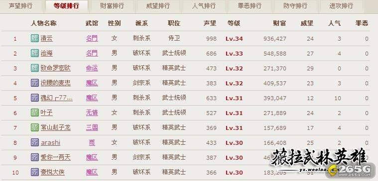 提示:四大排行榜中的任意排行前十名玩家,都能获得Q币!
