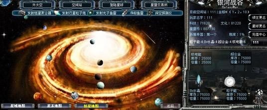 目前《银河战谷》还在不删档内测,新服即将在任玩堂开放,喜欢的朋友可以去看看,笔者强力推荐,可玩性太强了,让人不敢相信是网页游戏,画面华丽,操作性很强,系统也很丰富,有指挥官探险的角色扮演系统,有星际战舰组队系统,有行星武器系统,有庞大的帝国管理系统,特别是游戏里的武器系统,画面太赞了!