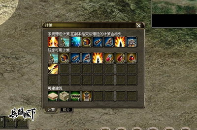 “火计” 对己方部队周围4格内使用,使用后可造成2*2范围火灾状态,可烧毁树林,降低建筑物耐久,使敌方部队处于火灾状态