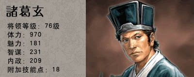 诸葛玄――根骨18 系统初始增加数量6