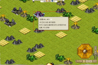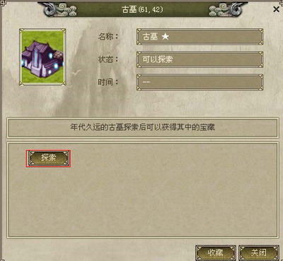 探索方式:玩家进入游戏后,点击国土按钮,选择相应探索点后,可以查看到该探索点的具体信息。例如:古墓,守卫实力弱,新手推荐,年代久远的古墓探索后可以获得其中的宝藏,可以探索。这块领地是玩家可以进行探索的。选择好探索点后,玩家可以点击编制编入兵。选择军队,点击出征,就可以进行探索了。