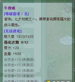 牛郎戒:[等级需求:无]首饰。七夕对戒之一。佩带者将拥有强大的战斗属性。