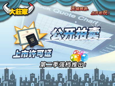 拍卖时间内玩家在大庄家拍卖行中出价竞拍,出价最高的玩家获得上市许可证。