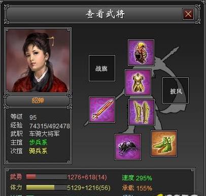 这位虽然不是现代明星,但是对于我们玩家来说却是再熟悉不过的存在了吧。武职为车骑大将军,一身夺目的紫装,其属性也令我们玩家砰然心跳。除了《真三国无双外》,大概女武将貂蝉只有我们的玩家能够收入麾下了。