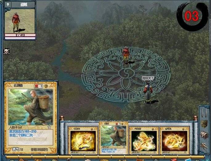 游戏战斗模式采用了回合制的战斗模式,与众不同的卡牌式战斗系统,关于如何战斗,在下将在另外一篇文章中详细介绍,请关注啊,暂时透漏给大家一张游戏战斗截图。呵呵,游戏添加了自动战斗功能,和可爱的MM一边并肩战斗,一边开心地聊天,很安逸哦!