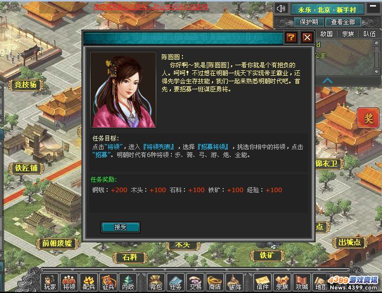 4399《明朝时代》新手指导员就我们为了更好地帮助新玩家熟悉《明朝时代》而建立的一个角色,其主要工作为:
