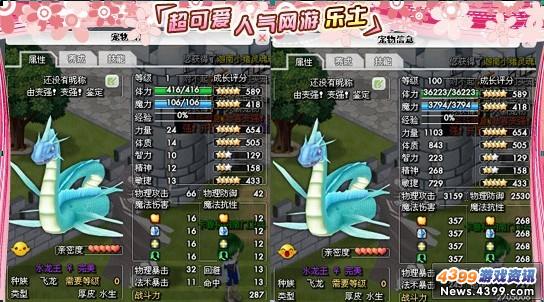 还能获得白金版超级神兽水龙王与珍藏版超级神兽水龙王。白金版神兽天生就拥有完美的天赋评分,而珍藏版神兽则拥有极品二星以上的天赋评分。白金水龙王三项天赋评分达到500以上,而力量评分更是达到654,是目前为止4399《乐土》中最为强大的神兽。