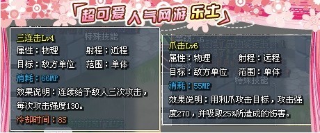 除了超强的成长天赋之外,超级神兽水龙王独特的技能才是它如此强悍的原因:可以连续攻击目标三次的“三连击”,能够吸取生命的“爪击”。这样的技能搭配让它能攻、能守,成为当之无愧的乐土第一宠!