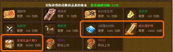 点击进入后,玩家们便可以看到新增的追踪符、传送符、BOSS定位符和一些常用道具,还有就是只有“破阵”才会出珍贵道具的1级强化材料,现在也可以用功勋兑换哦!