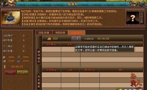 《征战天下》首创内政情报机构,在这里你可以派出间谍去刺探敌军情报, 情报处共分三个版块,第一版是训练和派遣细作,输入城池名或者地点坐标就可以派出去刺探敌情了。