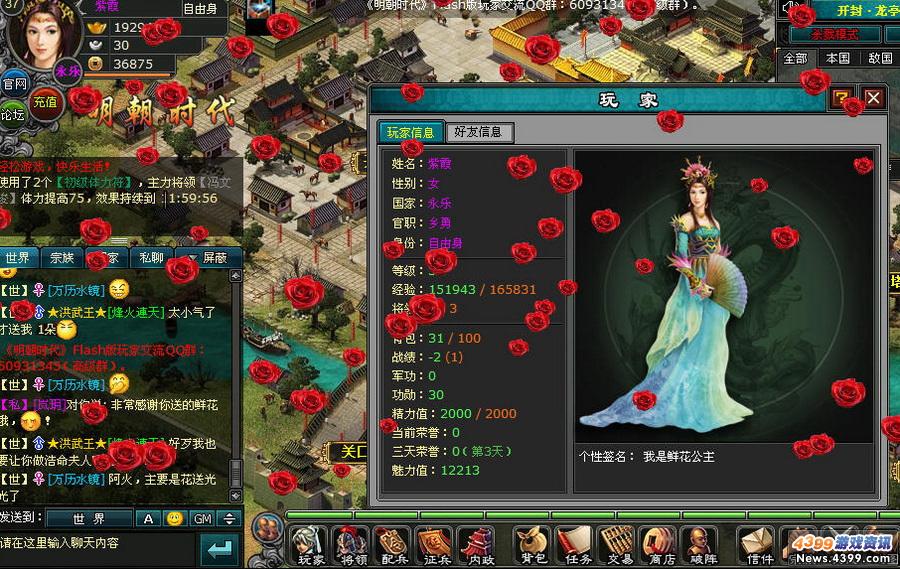 天寒地冻的深冬是否需要一点热身运动与激情,宅在家里的你是否手脚已经生锈了呢,很久没有使使劲是否感觉整个世界都是灰色一片……4399《明朝时代》最懂你的心了,这次小J精心为你谋略了一起“杀BOSS、抢鲜花、送美眉”的疯狂案件。准备好作案了吗?胆怯的话就不是4399明朝时代英雄了,来吧,全民抢夺鲜花送倾心MM,活动活动筋骨让这个冬天不再刺骨。明朝时代官网:http://web.4399.com/mcsd/