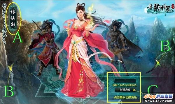 介绍完背景就让我来带大家领略下游戏内容的精彩,注册好了帐号后登入游戏就能看到华丽的人物选择,此时伴奏着悠扬的背景音乐让你耳目一新。这里说下游戏的背景音乐,个人认为与其他游戏对比之下,4399盘龙神墓记的更有创意,每个国家场景都有着不一样的与该国度特点贴切的音乐。如诛仙国度则采用了欢快的曲目让玩家进入游戏就被游戏的场景氛围所渲染,其他国度的音乐就要各位玩家在游戏中慢慢去体会吧。