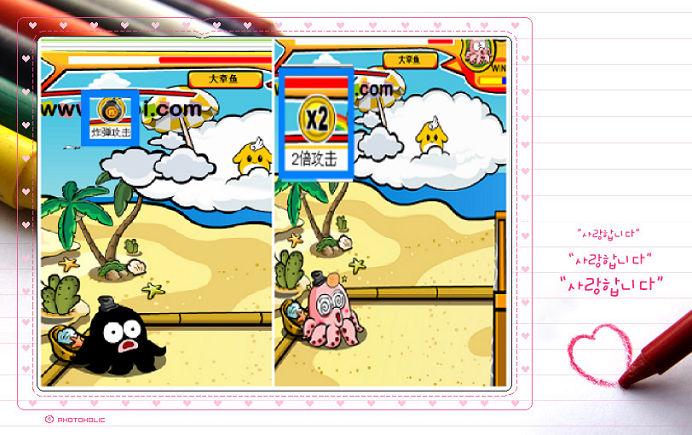 打章鱼时想快速解决的话~就第一下放炸弹~然后双重攻击~准度像我一样的话就会如下图~O(∩_∩)O~然后在来一发就可以解决他咯~