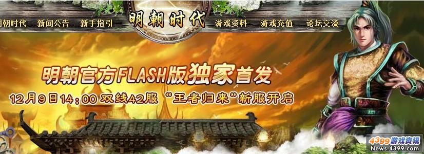 4399《明朝时代》双线四十二服“王者归来”将于今日12月09日14:00震撼开启!一款10万人同时在线的网页游戏,09年最潮流的Webgame史诗巨作!4399明朝时代集角色扮演、策略、冒险等多种游戏模式为一体的综合性网页游戏。整个游戏以大明王朝为背景,复古的人物造型、地大物博的中国地图,加上丰富的游戏系统和多样的战斗模式,新老玩家蜂拥而至,同时在线人数突破10万大关!连连飚升的在线人数代表着广大玩家对4399《明朝时代》的认可和支持!明朝时代官网:http://web.4399.com/mcsd/