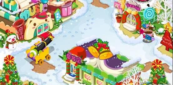 在这里,有随处可见的圣诞树,满地散落的拐杖糖,金色的铃铛,红色的圣诞帽,还有圣诞树下的礼物盒子……